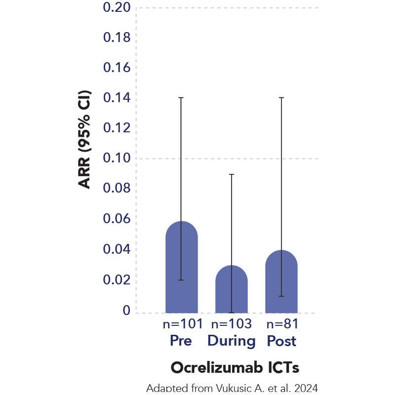 LMP: L M P; ARR: Annualised Relapse Rate ; ICT: ; PY: ;