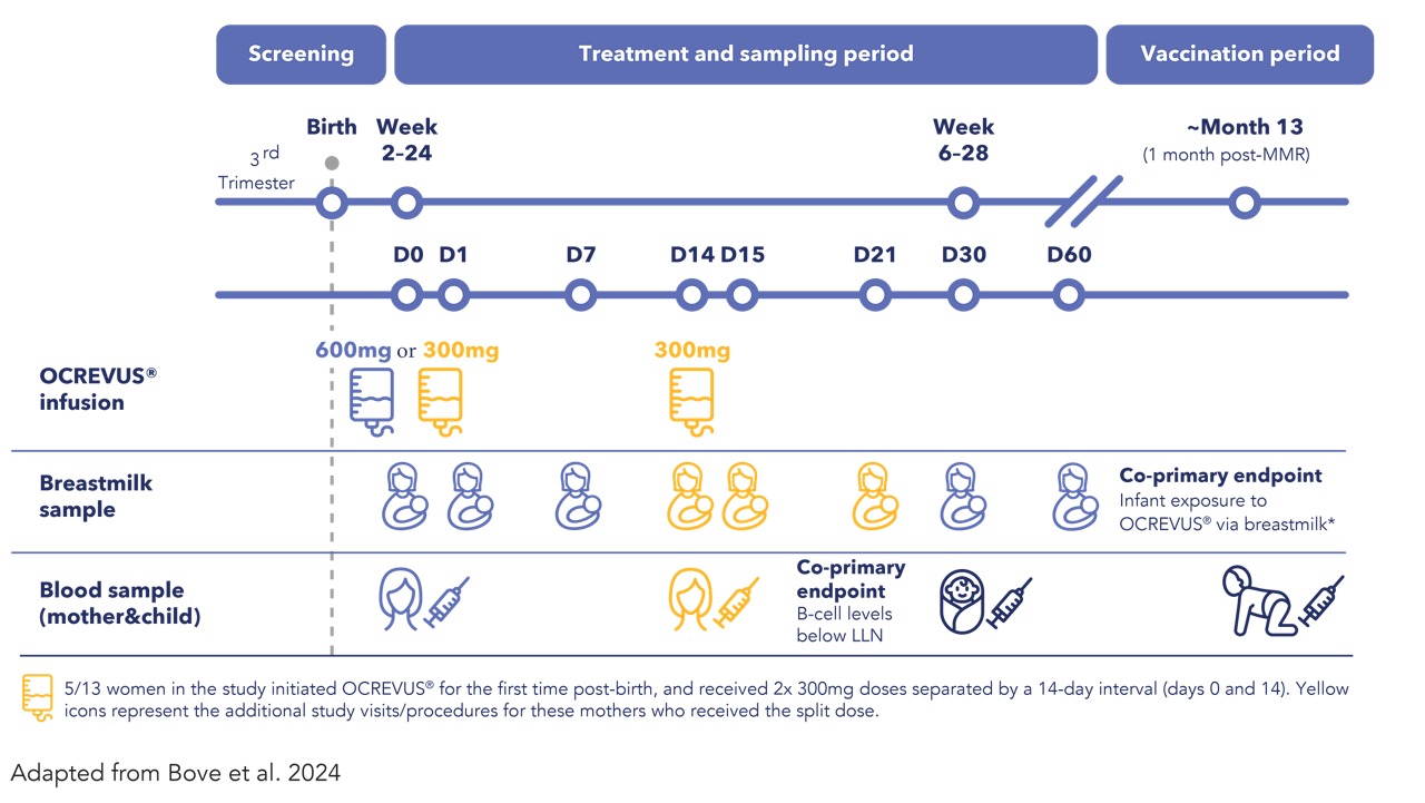 The SOPRANINO study was a phase IV, multicentre, open-label study designed to assess the impact of maternal OCREVUS dosing on breastfeeding mothers and their infants3: