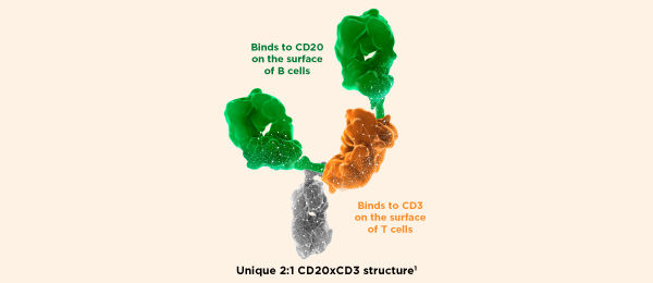 COLUMVI is a bispecific monoclonal antibody that binds bivalently to CD20 expressed on the surface of B cells and monovalently to CD3 in the T-cell receptor complex expressed on the surface of T cells.